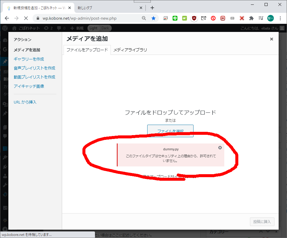 WordPressで「このファイルタイプはセキュリティの上の理由から、許可されていません」と言われた時の対応