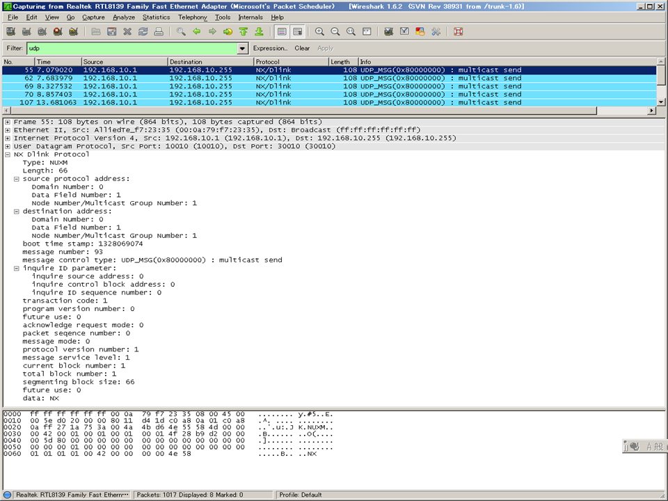 Ver 0.02 TCP/UDPデータに"NUXM"があったら、送信ポート番号を調べて