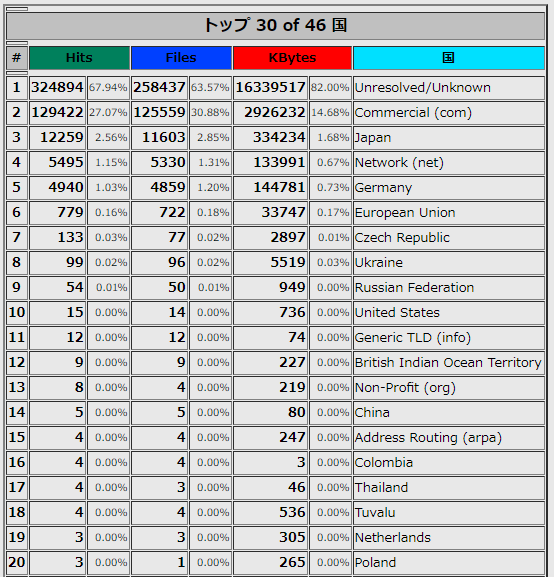 2021年2月のアクセスログの一部