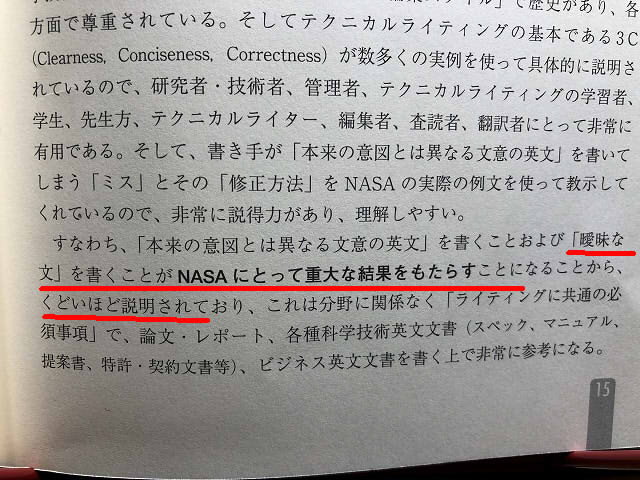 つまり、『いい加減な文章を書くと、(ロケットや宇宙船が爆発して)人が死ぬぞ』という、開発現場のエンジニアの危機感が感じられて、とてもいいです。