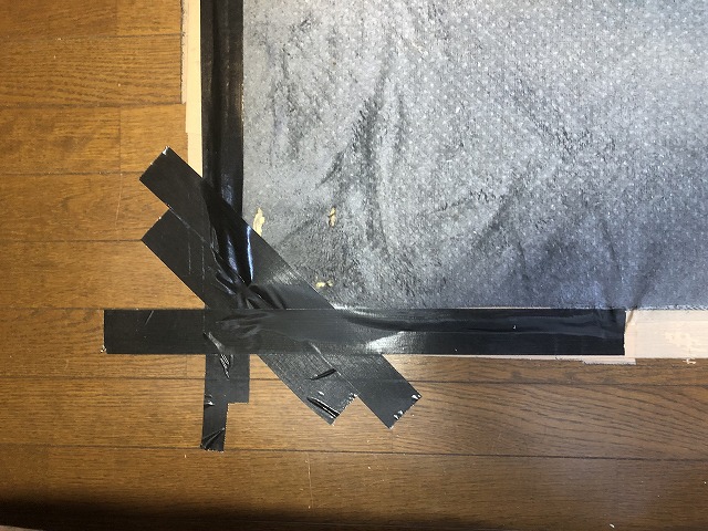 見苦しいですが、カーペットは布テープで固定して動かないようにしてあります。