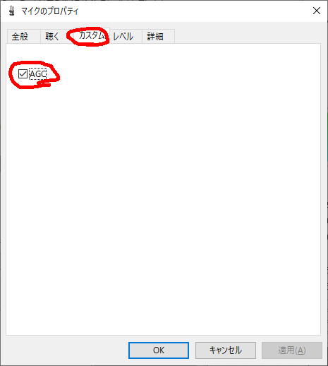 以下のAGCのチェックは「外す方がいい」というページもあるが、私の場合は「チェックをつけたまま」とした