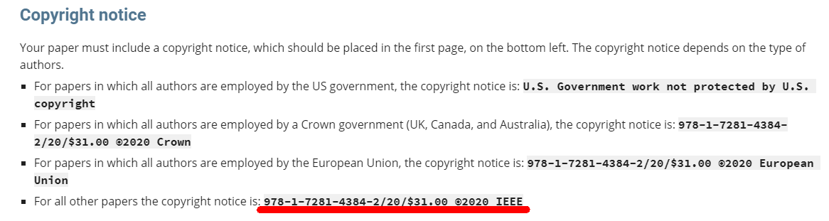 というか、私、これまで、これ("XXX-X-XXXX-XXXX-X/XX/$XX.00 ©20XX IEEE")を、ほったらかしにしてきて、学会事務局から指摘を受けたことがないので、正直、慌てました。