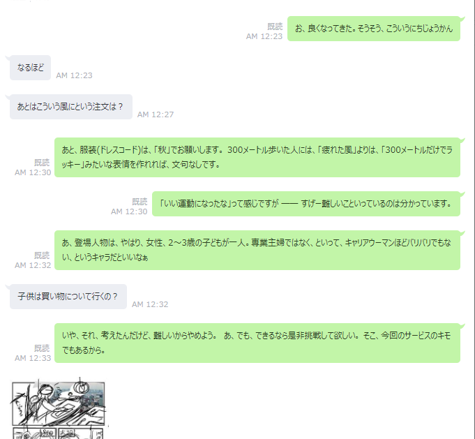 娘(次女)に発注した5コマ漫画の、仕様打ち合わせの様子