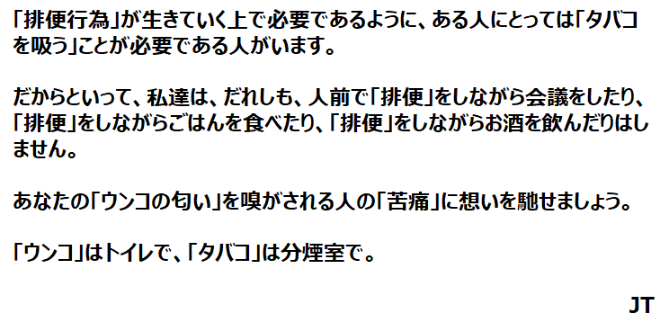 アフターコロナの飲み会の喫煙に対する対抗策(これを事前に関係者にばら撒く)を、今、考えておく2021年9月17日 ↑クリックで、日記に飛びます で、これを読んでいたら、こんなのを作ってしまいました。 2021年9月17日未分類Posted by ebata