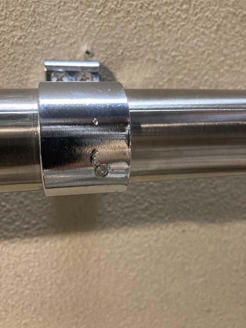 そこで強制的に、アタッチメントと鉄棒(金属管)に穴を開けて、そこに、ネジを差しこむことにしました。