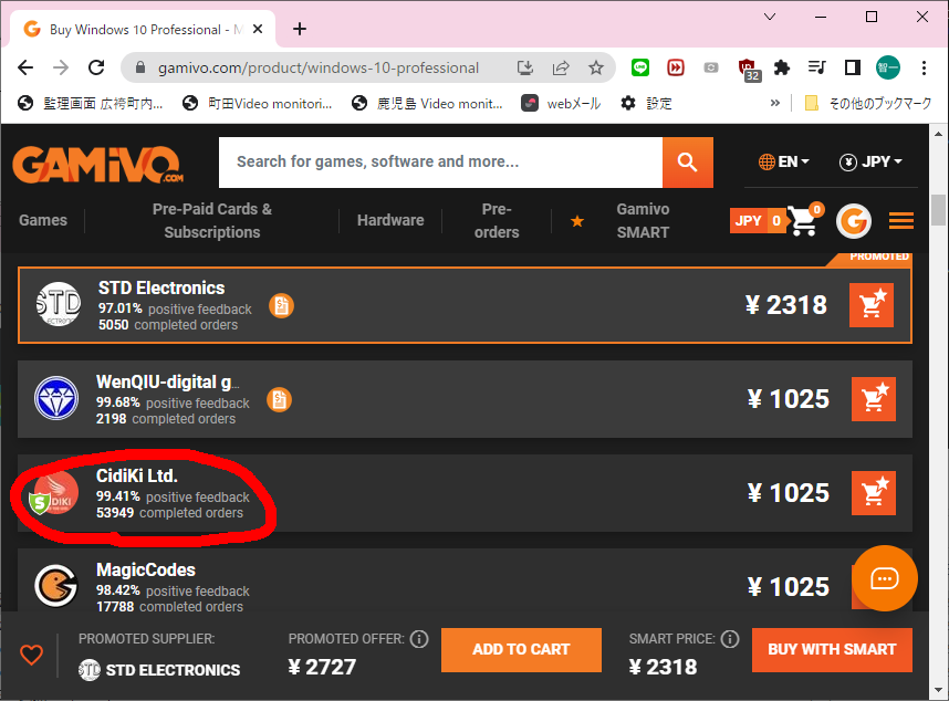 先ずは、Windows10のライセンスキーの購入でした。最近、正規版(リテール版も)が安くなっているようで、私は、https://www.gamivo.com/product/windows-10-professionalから、プロバイダーを一つ選びました。