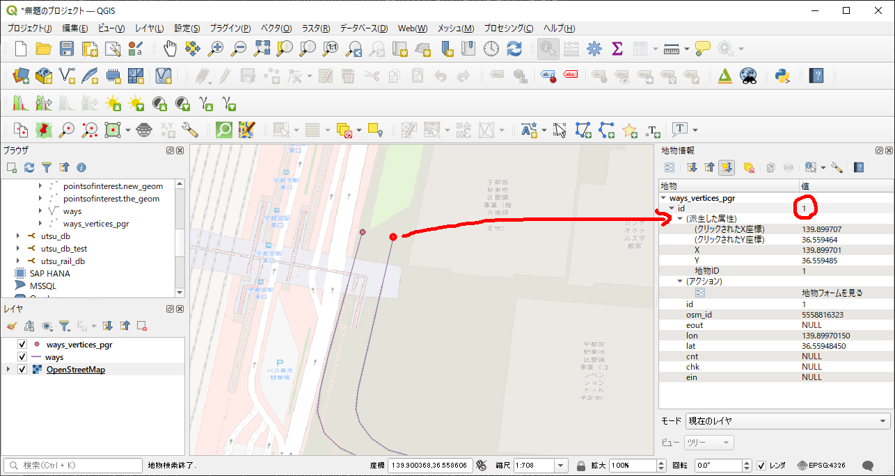 OpenStreetMapから、鉄道情報(芳賀・宇都宮LRT)を引き出して、ダイクストラ計算やってみました。