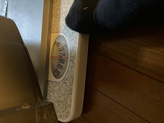 その前に、このテレビの正確な重量を計測しておこうと思い、テレビの下に体重計を捩じ込みました。
