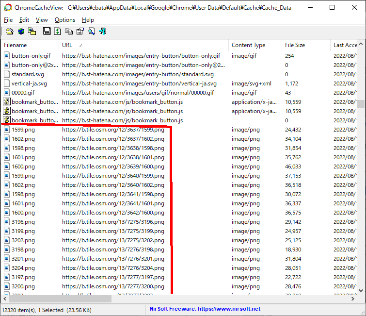 キャッシュで取り込まれているOpenStreetMapのタイル画像(png)を、ローカルに取り込んで、