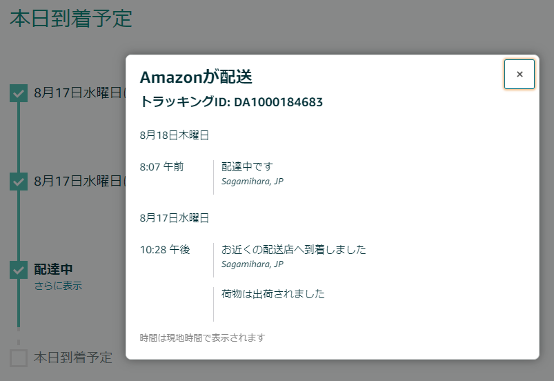 まあ、Amazonが「見込配送」を表示していることは分かりました。