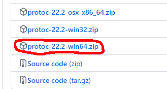 (1)https://protobuf.dev/downloads/ から "Latest Version" →  "*-win64.zip"