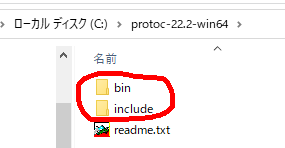 でもって、この両方のフォルダーにpathを通しておきました。必要なのは"protoc.exe"です。