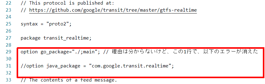 こちらの環境でも、上記と同じ手続で、gtfs-realtime.pb.goを作り、