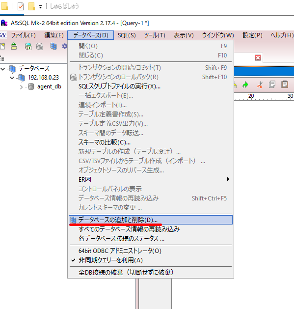 『データベースを登録する際に、データベース名に「agent_db」 を指定していただく必要があります』