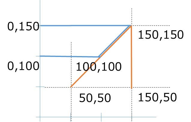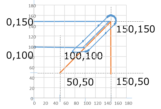 ちなみに、現実世界の座標では、0,150や100,100などの座標はないのだけど、