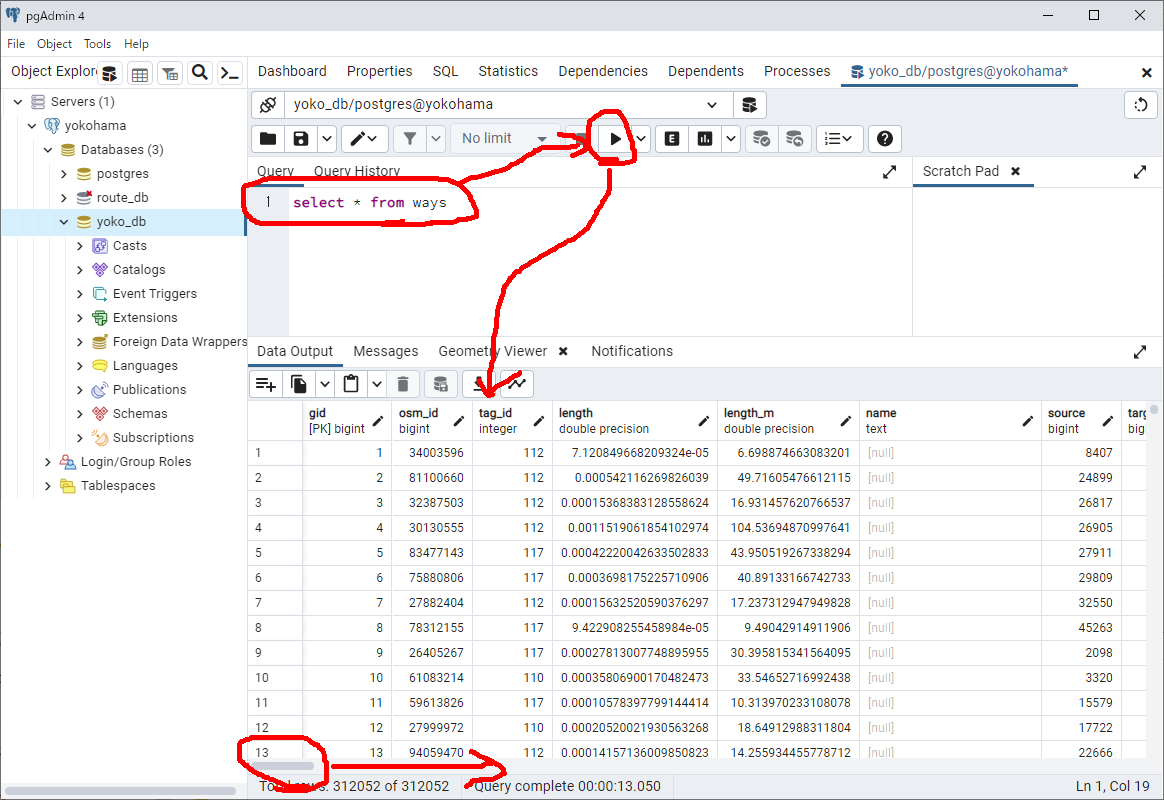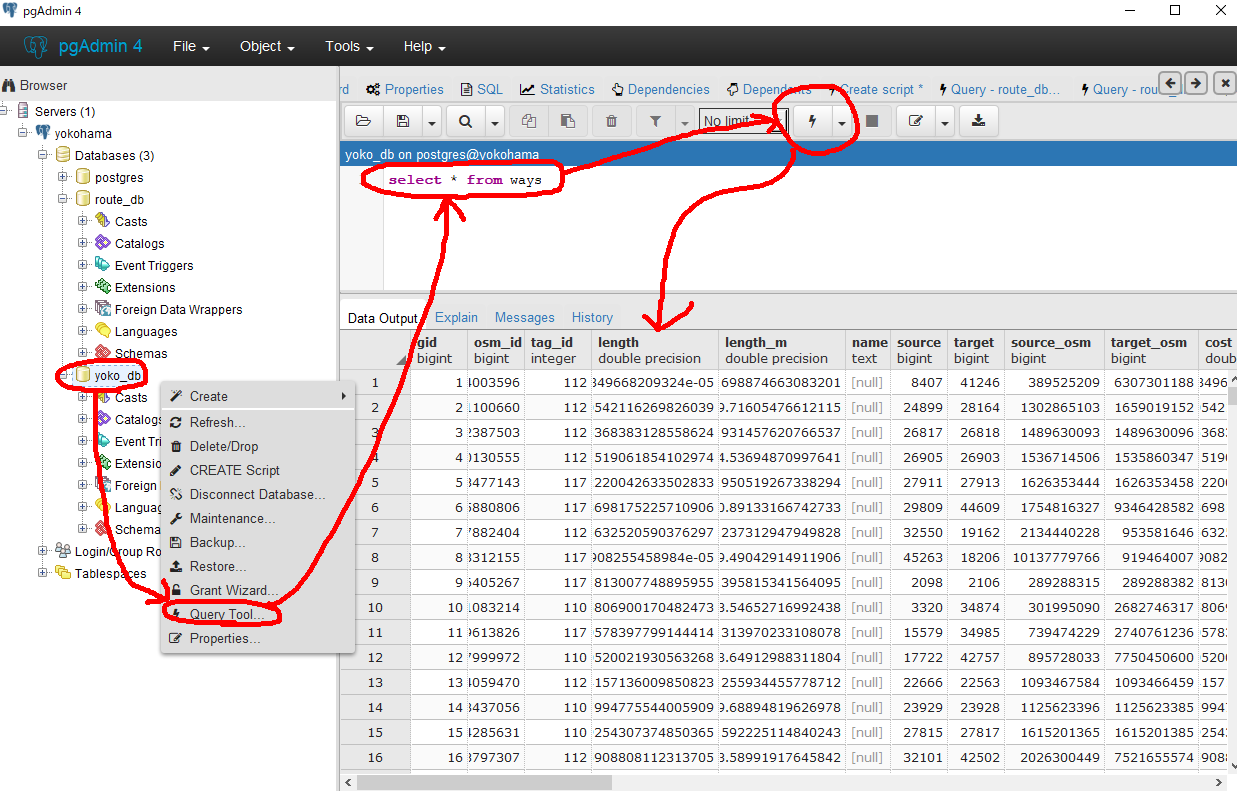で、ここで、「描画しないと確認が面倒だなぁ」ということに気がつきました。どうやらpgAdminを使えばこれが可能なようです(先程、最新版をインストールして、古いバージョンをアンインストール(デジレクトリレベルで手動で消去しないと、最新版の起動に失敗します)
