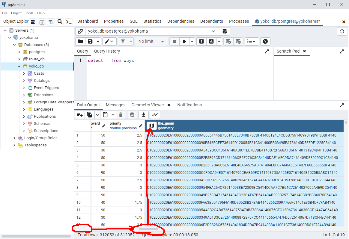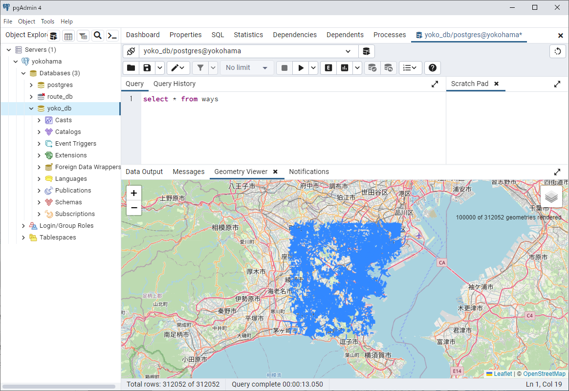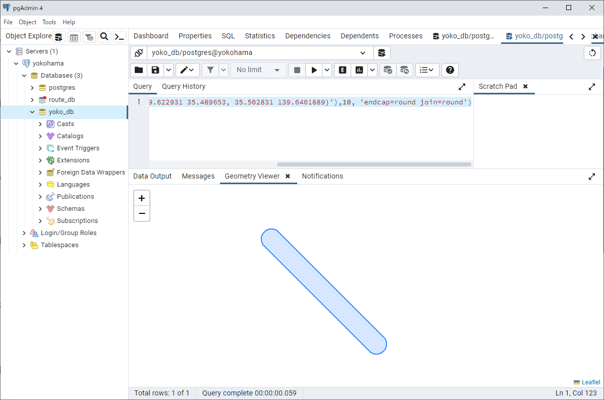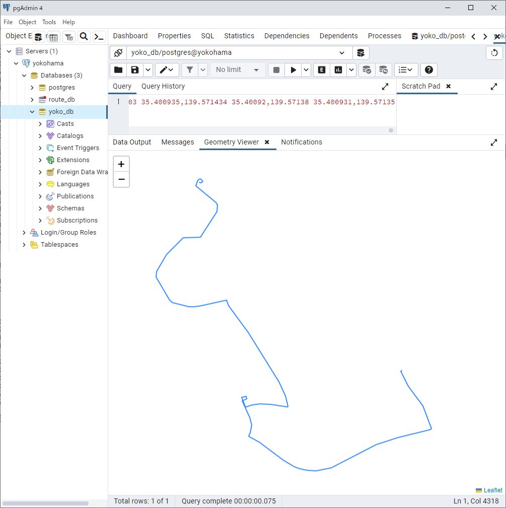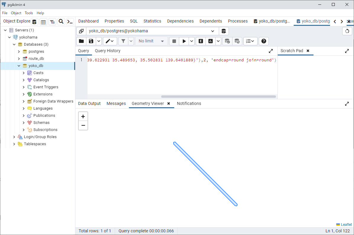上記は古いpgadmin4のビューです。新しいpgAdmin4では、これで地図が表示されるようです