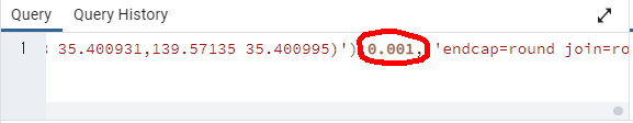 'linestring(139.595873 35.378154,139.595779 35.37812,139.595766 35.378045,..... ,139.57138 35.400931,139.57135 35.400995)'