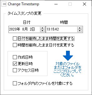 ファイルの更新日時を変更するフリーソフト - Change Timestamp