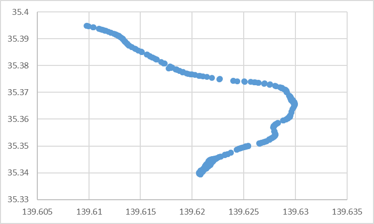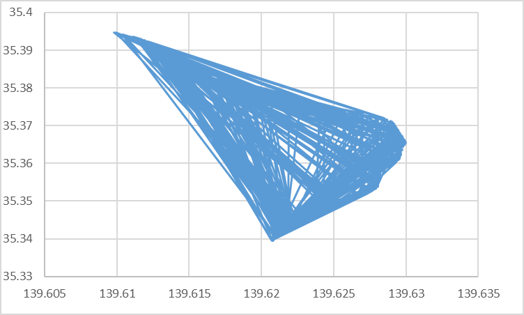// CSVの各行から緯度と経度を抽出