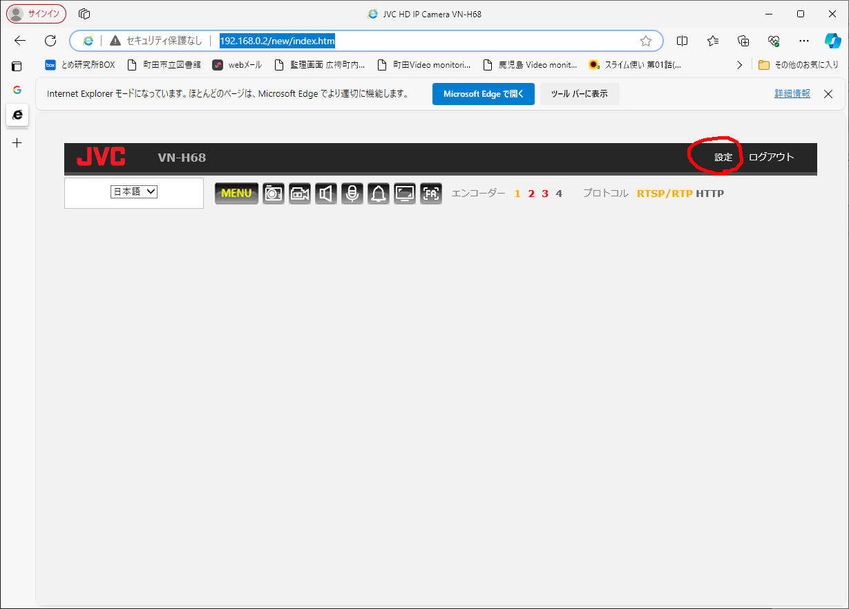 admin/jvc で、 JVC HD IP Camera VN-H68 が出てくる