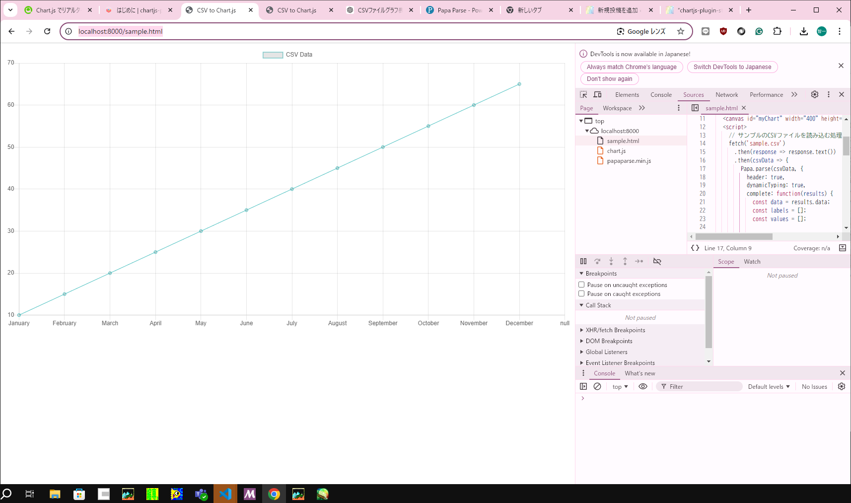 chart.js と papaparse.min.js でcsvファイルをグラフ表示をなんとかする(エクセルで書くのが面倒なので)