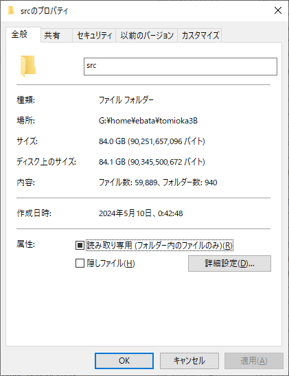 比して、今回の私の無秩序なプログラム開発に使用されたディスク容量は、84GBです。