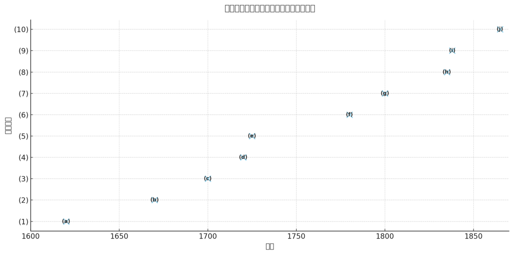 では、これらの番組を年表順に並べて、その前後の相関(例:因果関係)についての観点から江戸時代の思想的、経済的、または他の観点から論じてみてください