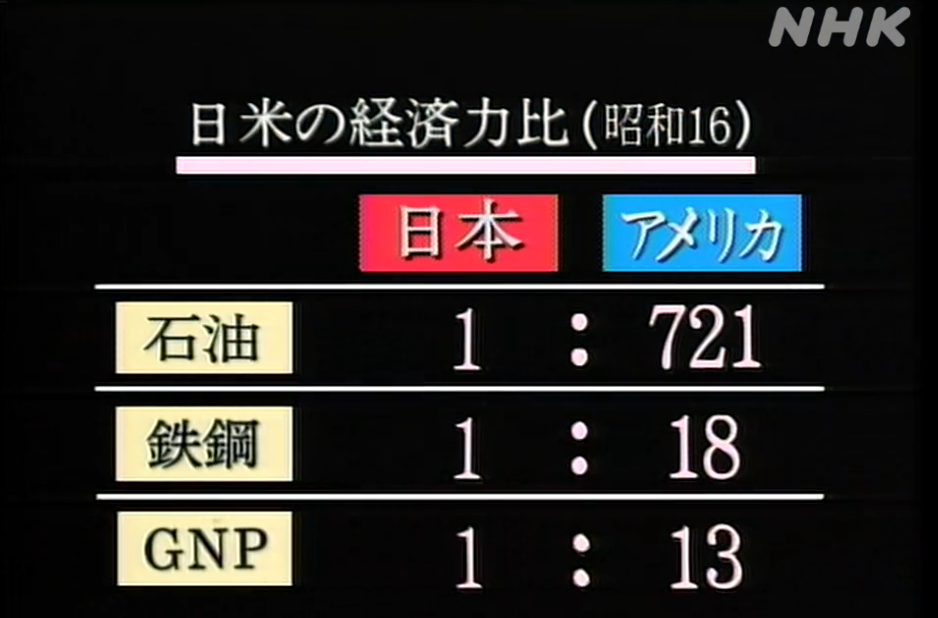 昭和16年(1941年)当時の日米の経済力比