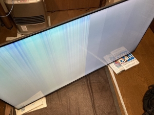 【修理お申込み内容】 受付番号: RP1001324833 名前:江端智一 型番:55M530X 問題内容:[画面に縦線が入る。] 55M530Xを使用中です。 画面が全面カラーバー状の縦縞になり、メニュー表示も同様です。 音声は正常です。 チャンネルを変えると縞のパターンは変わります。 背面を軽く叩くと一瞬表示が変わります。 電源抜き30分のリセットでも改善しません。 修理見積りをお願いしたいです。