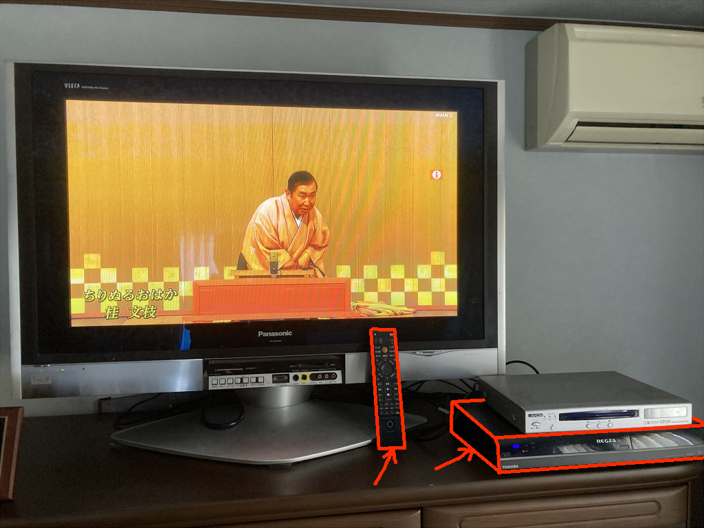 4年前のREGZA本体(HDDレコーダ)とリモコンのみを使用。ケーブルはHDMI接続のみ。