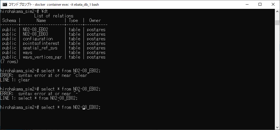 ただ、selectしようとすると、変なエラーがでるので、テーブルの名前を変更した方がいい(が、今日は疲れたので、ここまで)