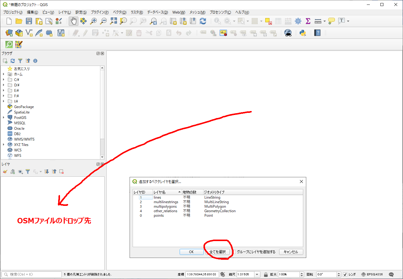 いつも、osmファイルをドラッグする場所を忘れるので、メモ