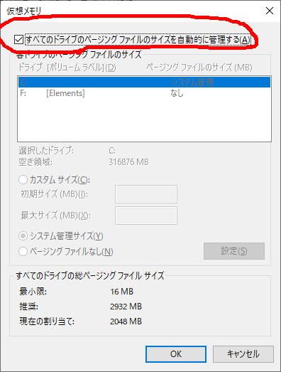 Windows10 - 仮想メモリの設定・サイズ変更(カスタマイズ)