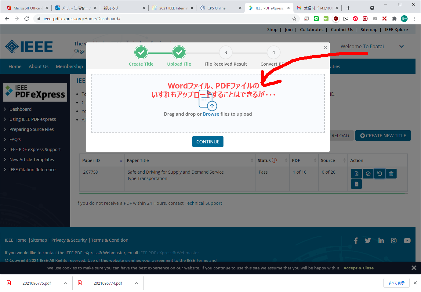 学会に(カンファレンス)ペーパーを投稿する時に、IEEE PDF xEpress (PDFeXPRESS) でPDFファイルを作らないと、学会が受理してくれません(少なくとも現時点では)。