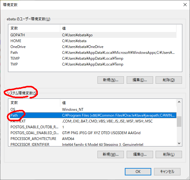 私の場合、C:\goにインストールしているので、上記のように記載しています。