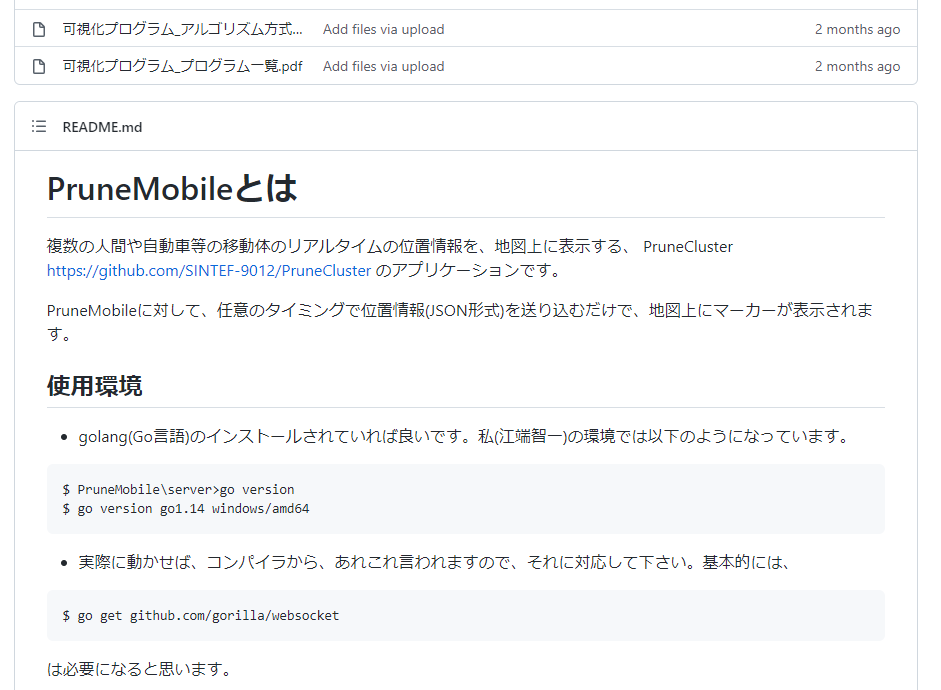 - PruneMobile\server\clientX.go (Xは数字)を起動すると、10秒間程、マーカーが移動して、その後消滅します。