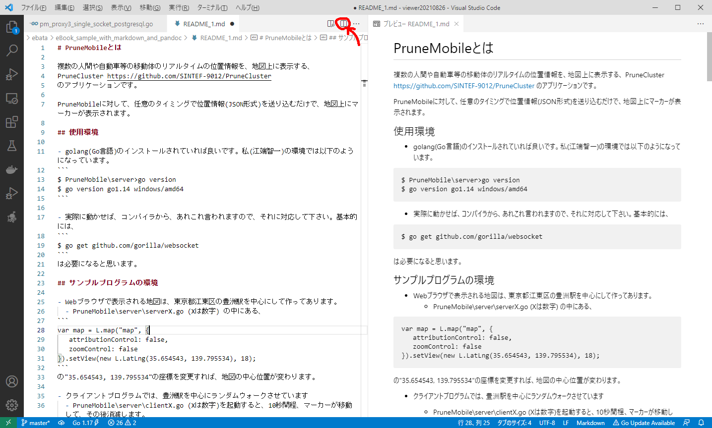 それと、 md(Markdown)ファイルを編集するなら、Visual Studio Codeが便利そうです。