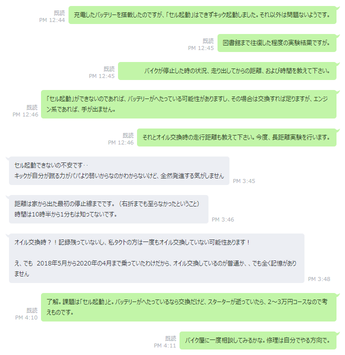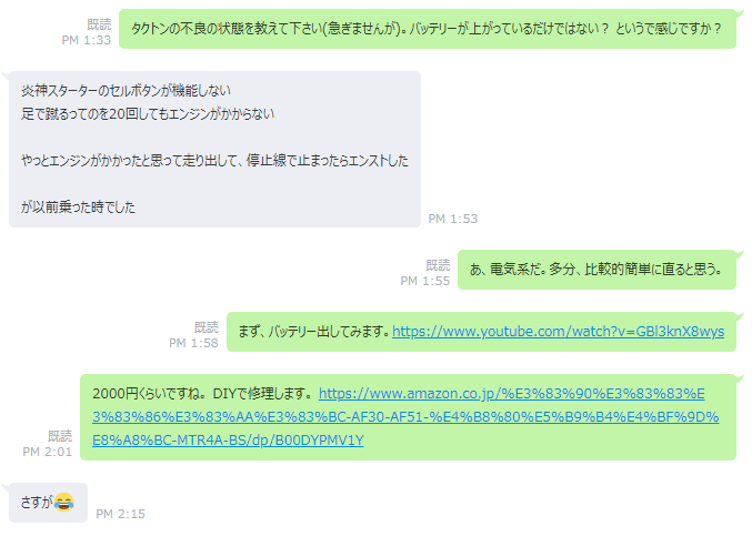 バッテリー不良ごときで、バイクが廃棄されたかもしれないかも、と考えると、さすがの私も「もったいない」と思います。
