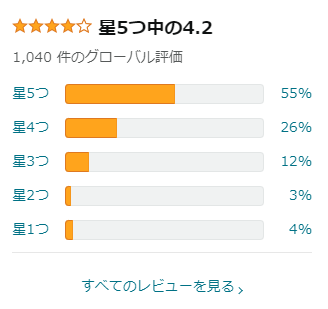 購入の判断は、評価者数の多さと(1040個の評価)と、