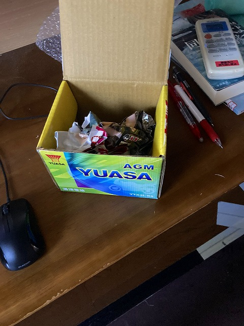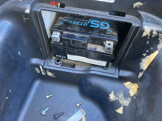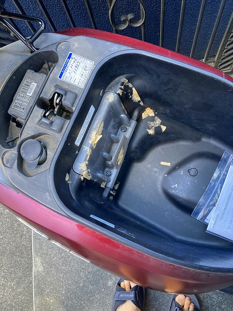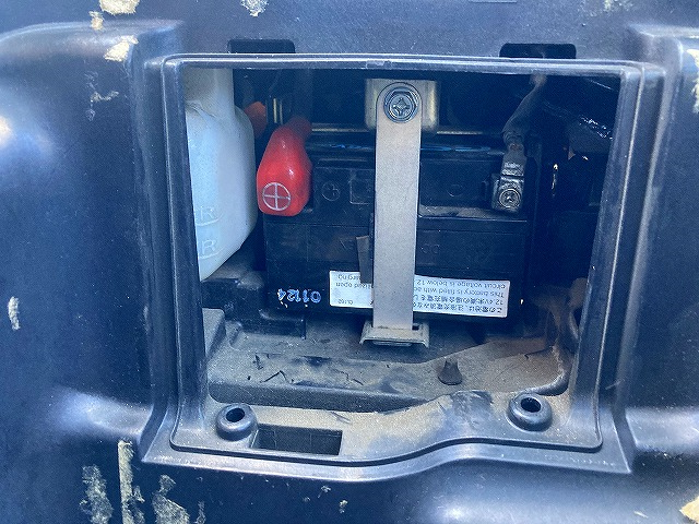バッテリーボックスの回りにガムテープを貼っているのは・・・以前、きちんとバッテリー収納ボックスを開けてみたはいいが、閉めれなかったんだろうな~、と推測。 → 保険証を貼りつけていたことを思い出した。