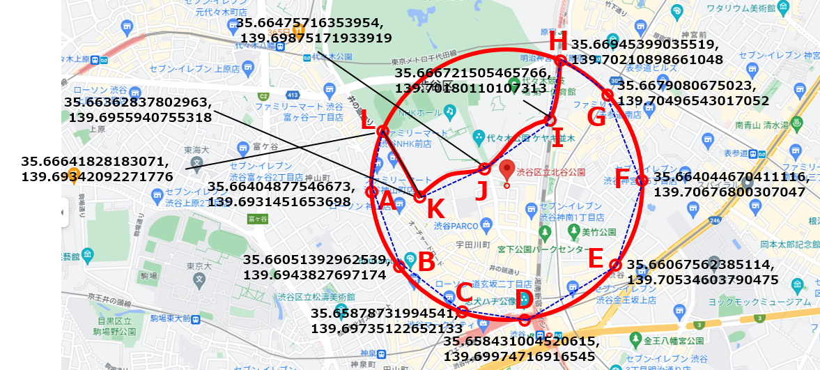 kitaya_db=# SELECT st_asText(ST_GeneratePoints(ST_GeomFromText('POLYGON((35.66463989558893 139.69827111644202,35.663009879798764 139.6983247606236,35.663436999453225 139.7011571734108,35.665398233838545 139.7012966482829,35.66463989558893 139.69827111644202))'),12));