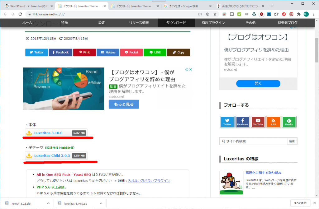 で、すったもんだしているうちに、どうやら、私が使わせて頂いているテーマ(Luxeritas, Luxeritas Child Theme)のバージョンが関係していそうだということが分かってきました。